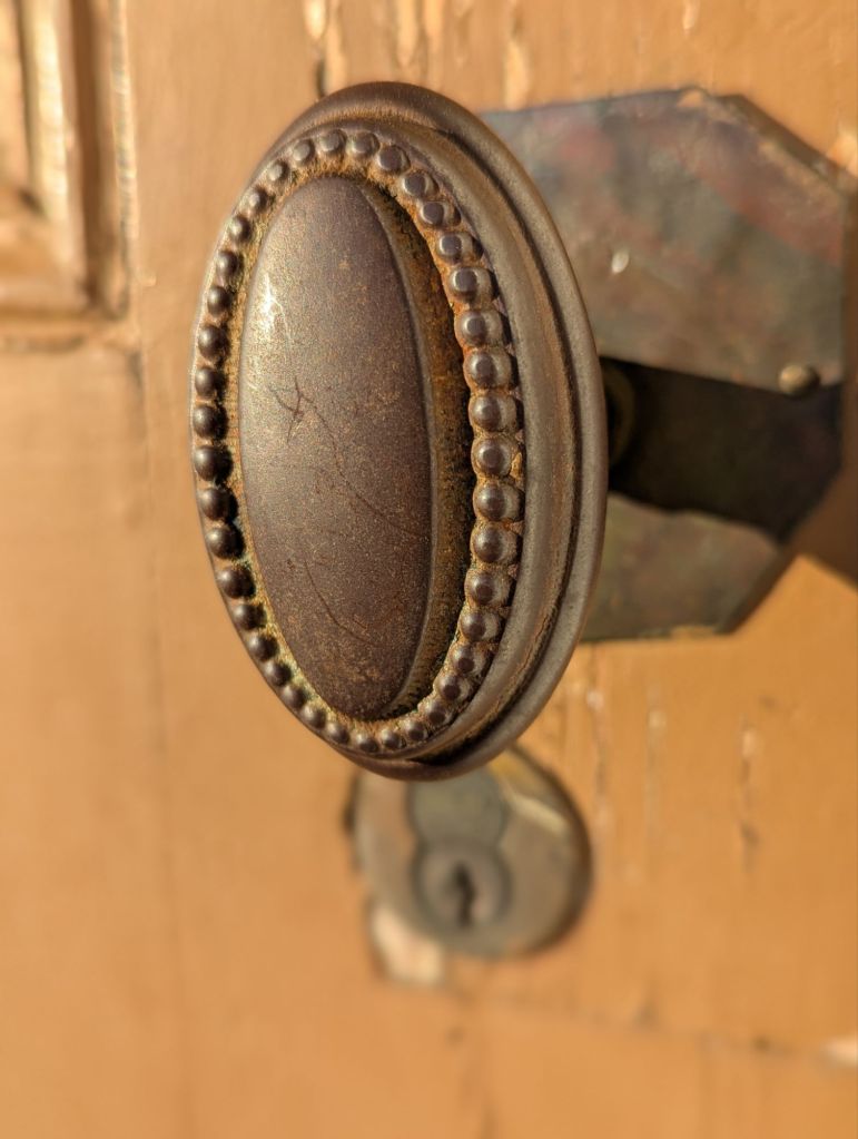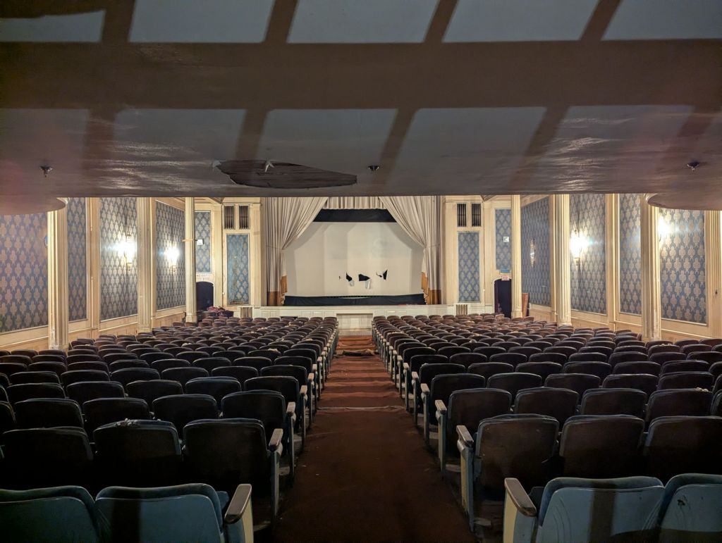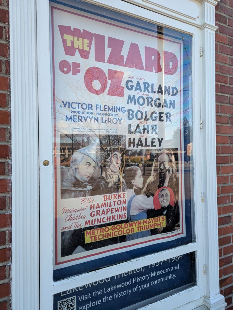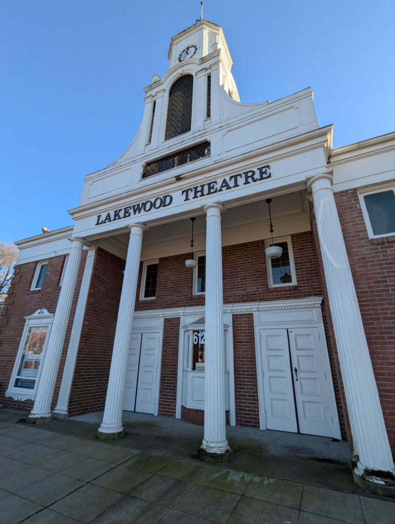 Next door is a beautiful, old movie theater (Lakewood Theatre) that is sadly being left to deteriorate. We were allowed in and marveled at the beautiful sconces, woodwork and other details. The creepy mannequin working in the ticket booth proved that my ol’ ticker is still working well.