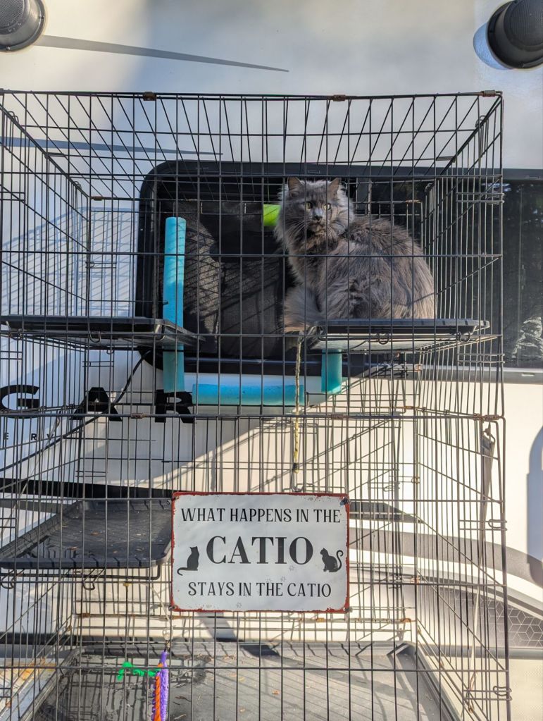Here’s our freezing weather plan: cat beds, human body heat, sunny spots. What’s the big deal? And we still expect you to leave the catio window open so we can lord over the campground. If you don’t like the cold breeze, put on more clothes and a blanket. We’re done talking about it.