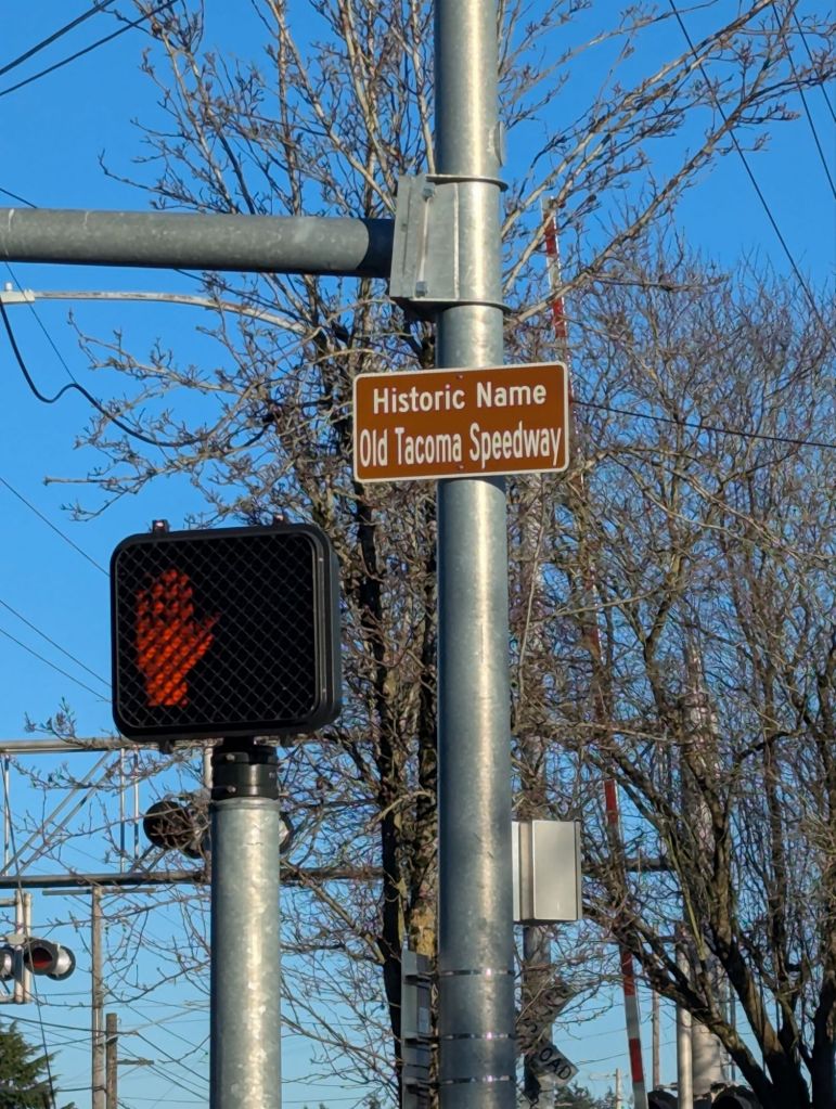 Clover Park Technical College sits on what was once the infield of the Tacoma Speedway. We tried to find signs of the speedway, but there is nothing left except a historical marker on a rock near Building 3. Not even the security guard who followed us around while we searched (before pulling us over to see why we were there DURING THE DAY) had even heard of the famous speedway that once encircled the college.