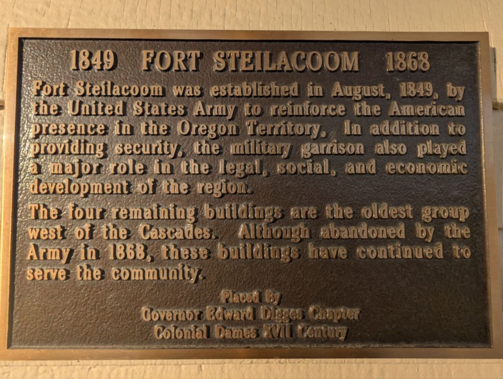 This fort with its small parade ground, Civil War cannons and officer’s quarters is just across the parking lot from Western State Hospital (a psychiatric facility still in use) and what appeared to be a prison facility. This fort was established in 1849 to “reinforce the American presence in the Oregon Territory.” Talk amongst yourselves…