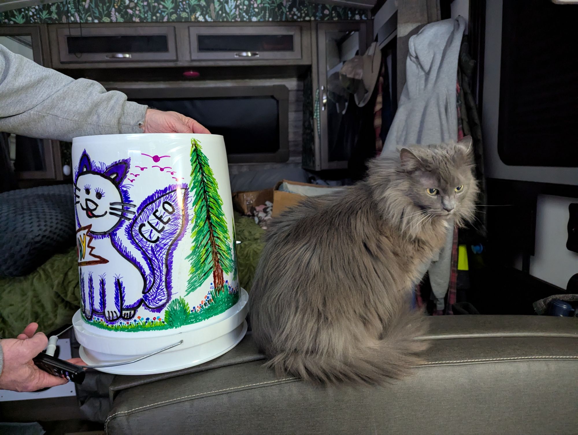 Down time is being spent with a mix of exercise, playing online billiards, reading, Greg’s artistic rendering of the cats and trip planning…mostly trip planning. We have a cross-country trip coming up starting in May. We are planning our route around a combination of places we have saved in Google Maps under “Want to Go,” as well as friends and family locations. We essentially have four months to do all that we can before we return to the PNW for annual doctor junk.