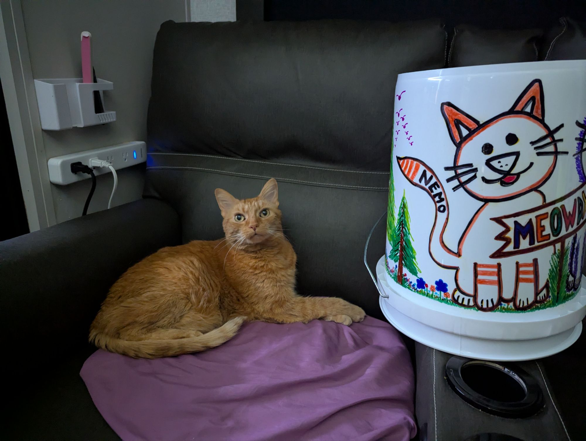 We are not sure we approve of Greg’s artistic rendering of us on the bucket that protects the tongue jack, but we appreciate the recognition of our greatness. He has thumbs, so we would expect a little more realism. It’ll do.