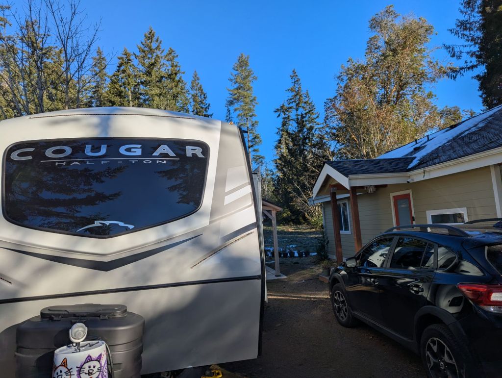 A quick 45-minute drive from JBLM over the Narrows Bridge onto the magical Olympic Peninsula finds us camped in the surprisingly snowy front yard of Leslie and Anthony in bustling Port Orchard as we “moochdock.” What is moochdocking? It’s simply camping for free in someone’s driveway or yard! Boondocking with style…Interestingly, we are not the only camper in a front yard on this street, so we don’t feel too much like Eddie from Christmas Vacation…”Shitter was full!”
