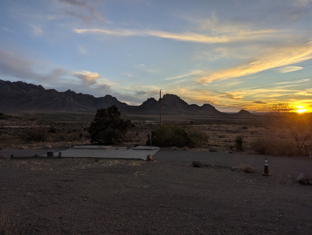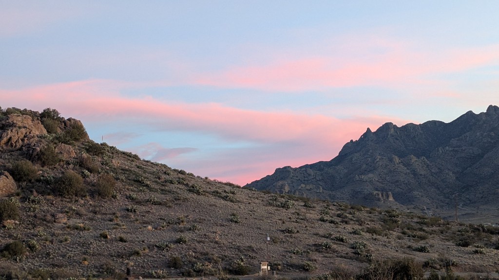 Small talk is hard sometimes. It’s okay to change your mind. Hot springs for sore joints. California Poppies, Florida Mountains, New Mexico. Quail and Ibex, hunters next door, mal de ojo. Very mal.