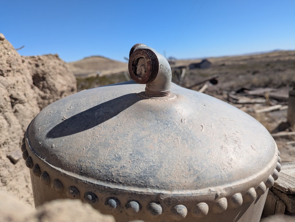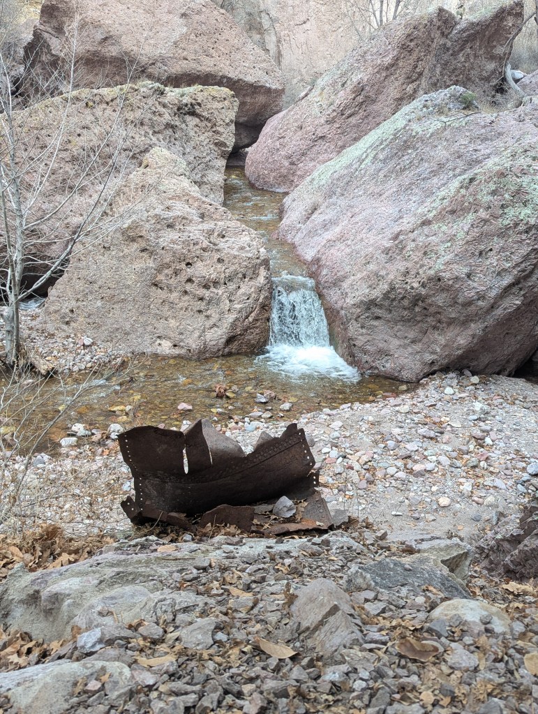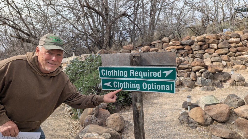 Tan arms, raking dust and rocks, yeah, yeah your dog is friendly, sure. Heard that before. Eighty-five and still raking. Keep moving, stay curious. Uh-oh, inbound. The sign says it’s potable.