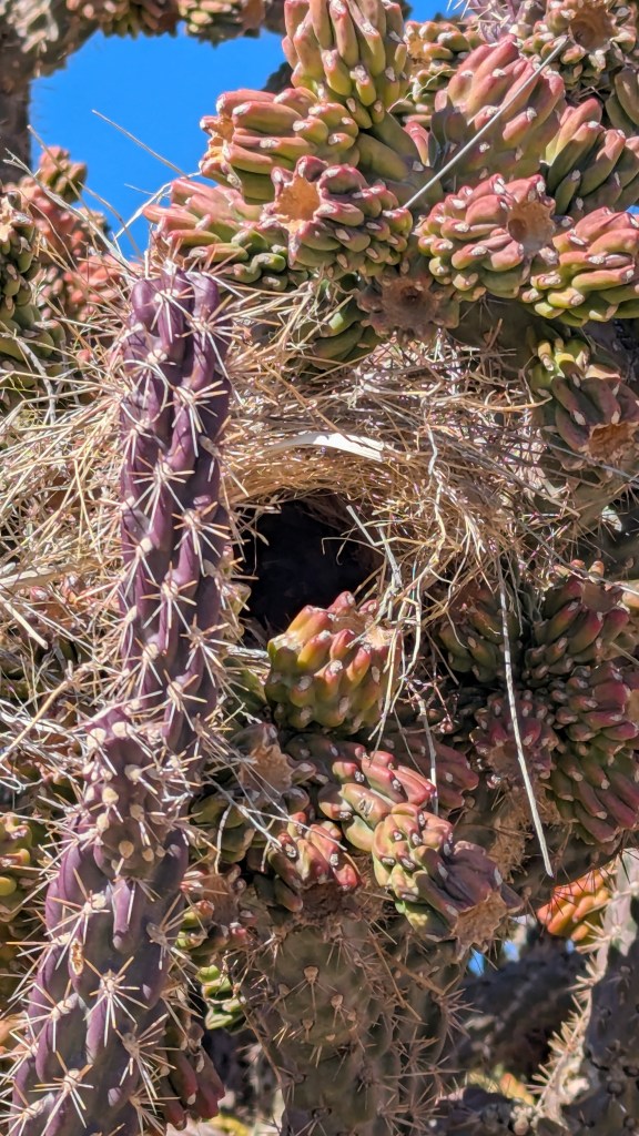 Cactus Wren nests in the cholla, canyon wrens in the canyon heard and not seen from the catwalks. Ghostly old mining towns, desperation and greed, like Deadliest Catch. Salsa macha on everything.